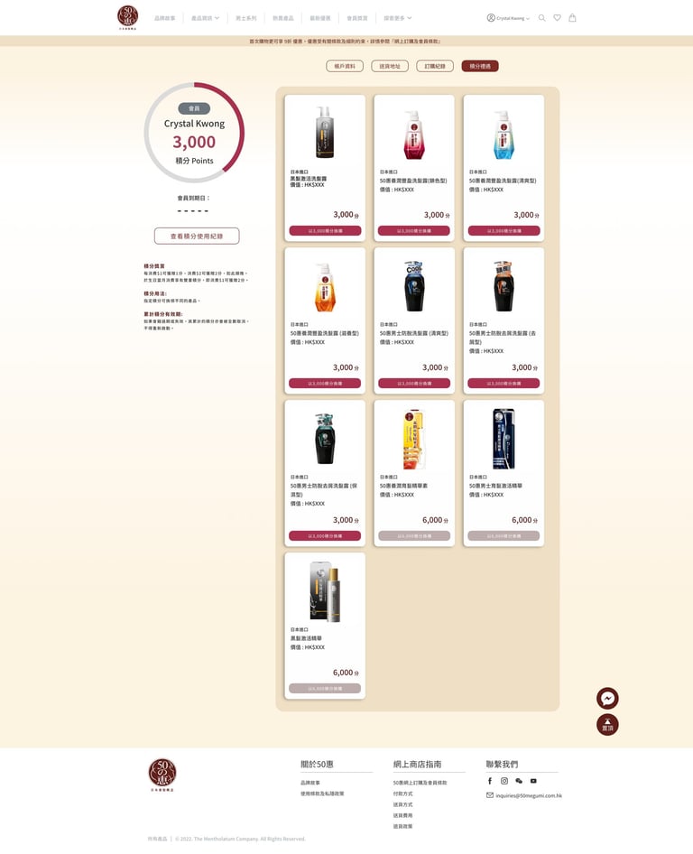 Reviewing 50 Megumi's old website without a shopping card function. There is room for improvement in content organization and streamlining specific processes in 50 Megumi's old website.